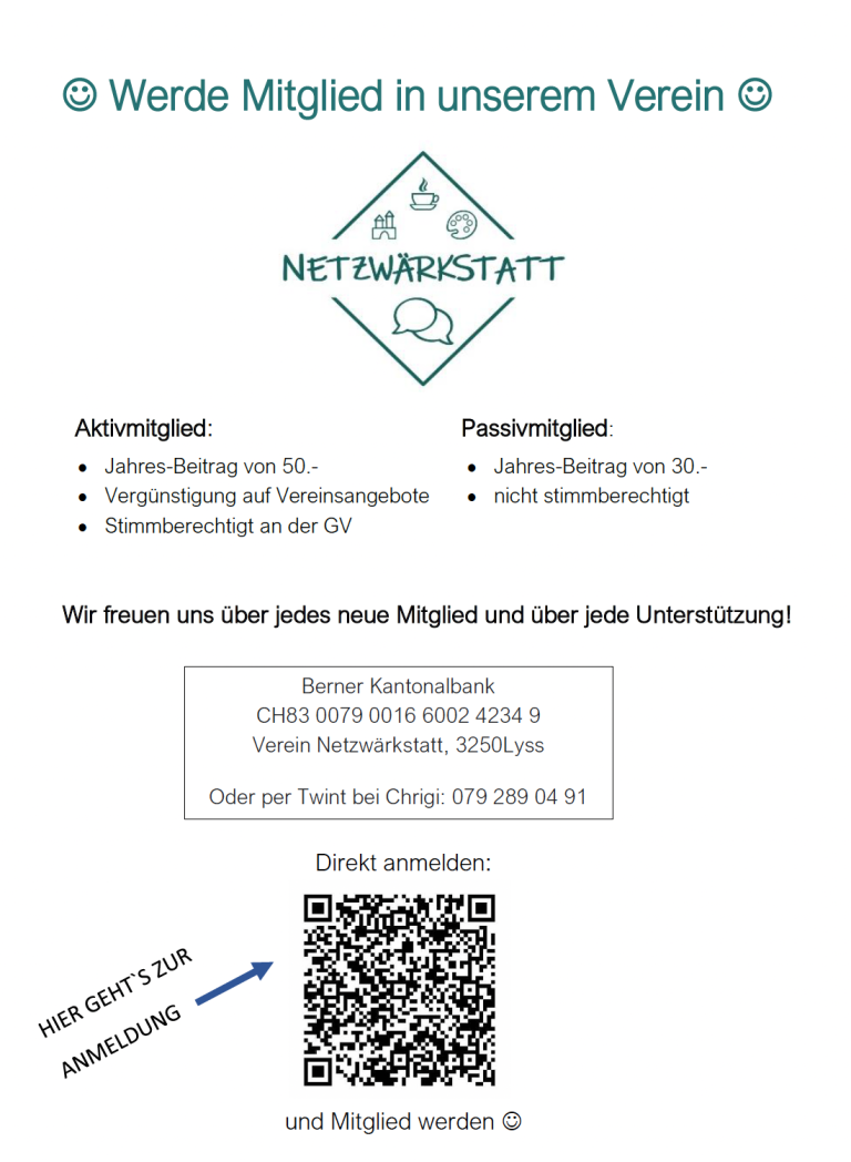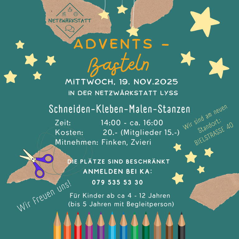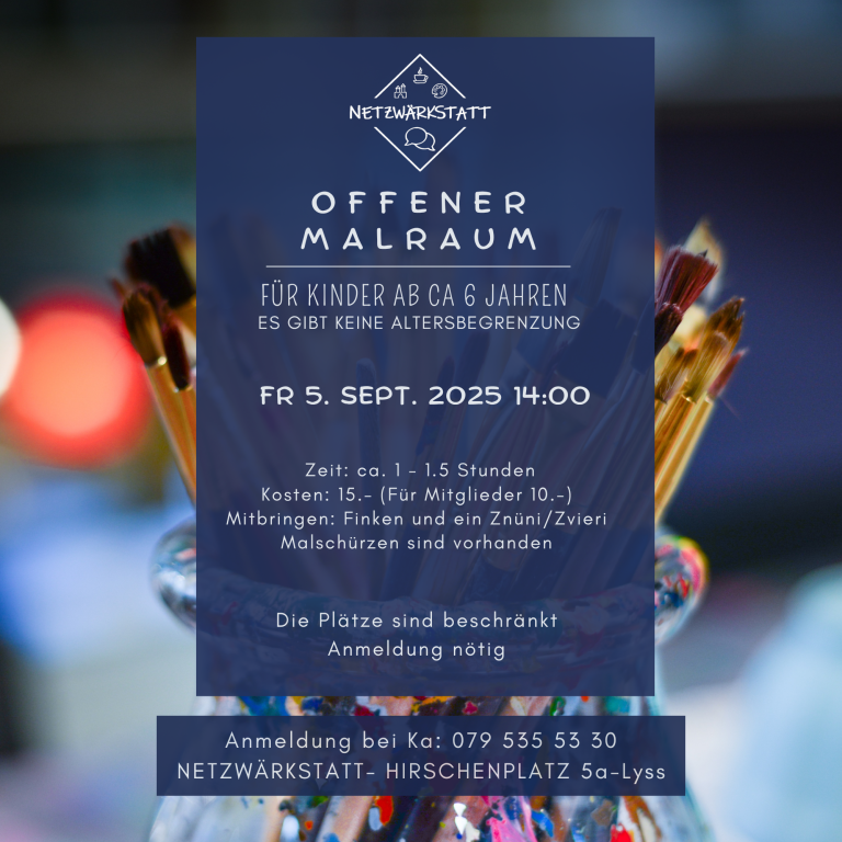 Da nun ein Umzug stattfindet, bieten wir in den nächsten Monaten etwas weniger Angebote an. Wir freuen uns jedoch ab November weitere Angebote in der neuen Netzwärkstatt anzubieten.