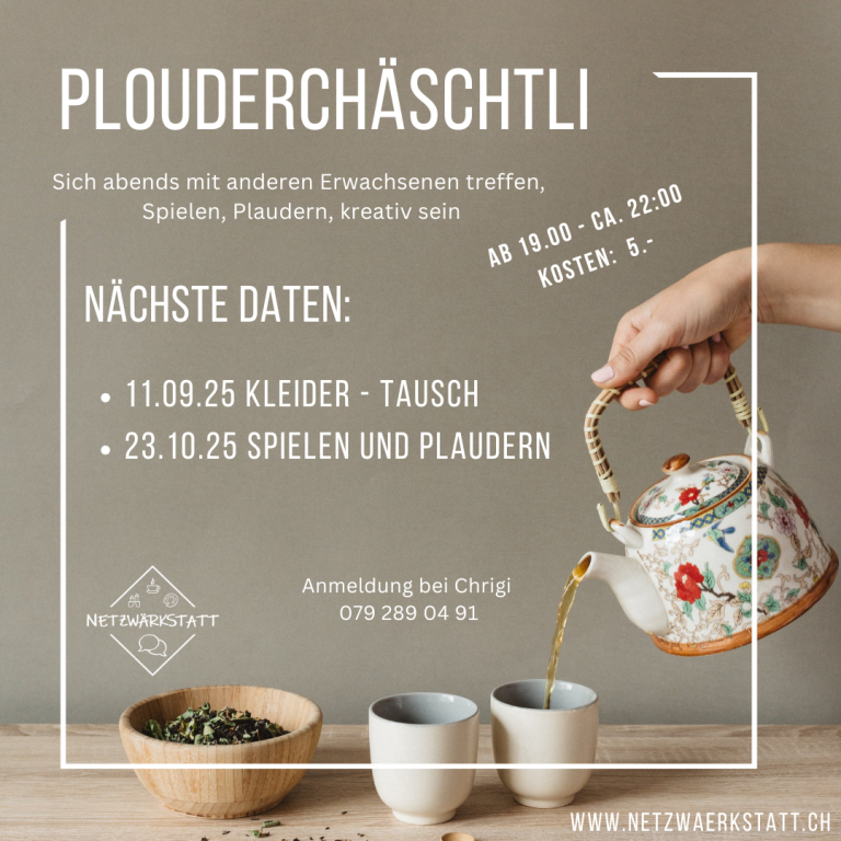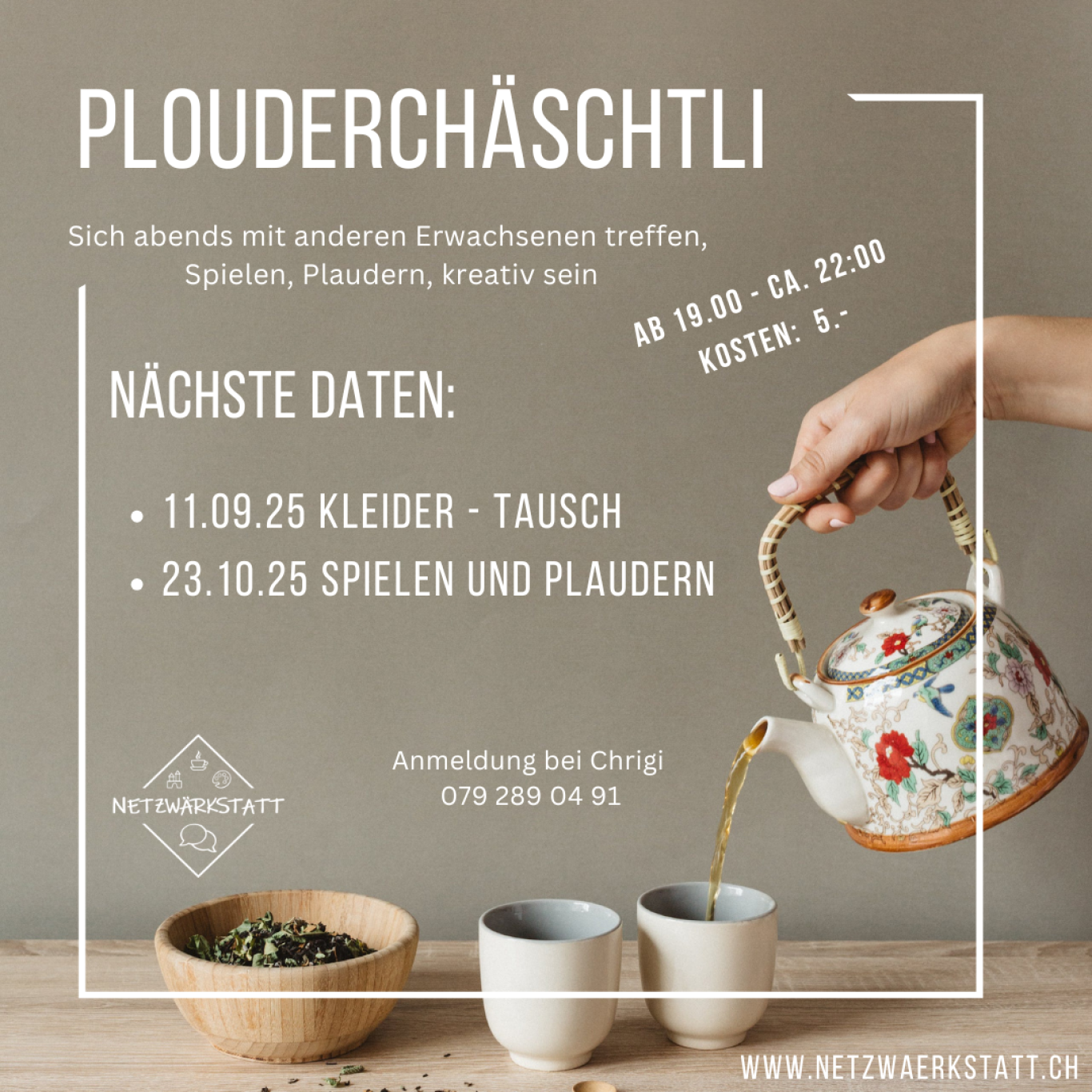 Donnerstag, 11.09.2025 - PlouderChäschtliDonnerstag, 23.10.2025 - PlouderChäschtliKreativ - Zeit